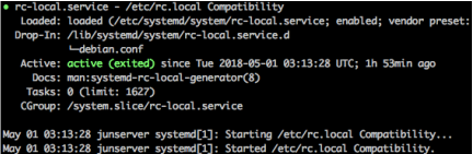 | [Unit] Description=/etc/rc.local Compatibility Documentation=man:systemd-rc-local-generator(8) ConditionFileIsExecutable=/etc/rc.local After=network.target [Service] Type=forking ExecStart=/etc/rc.local start TimeoutSec=0 RemainAfterExit=yes GuessMainPID=no [Install] WantedBy=multi-user.target |